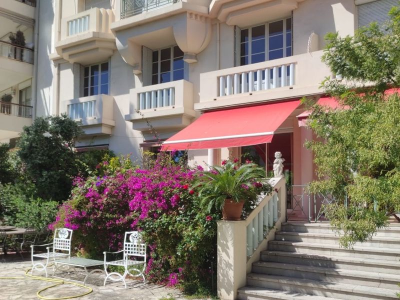Magnificent bourgeois apartment in the center of Cannes in absolute calm. Perfect for events and seasonal rentals. Stunning 115 sqm apartment with 3.25m high ceilings featuring 2 bedrooms, a separate lounge with the option for an additional double bed, a master bedroom with a private pink-themed bathroom, and a guest toilet with sink and shower. Enjoy the luxury of a 1200 sqm private garden and a 40 sqm terrace opening up to the 1200 sq.m privat garden without ai vis-à-vis. Your perfect blend of comfort and elegance awaits!