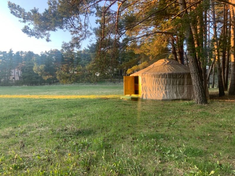 Nestled on the edge of a wood at an altitude of 1000m, you can stay in our traditional Mongolian yurts or in our chalet... and spend the time of your course surrounded by nature, outside under our arbor or in the chalet's living room not far from our fireplace!