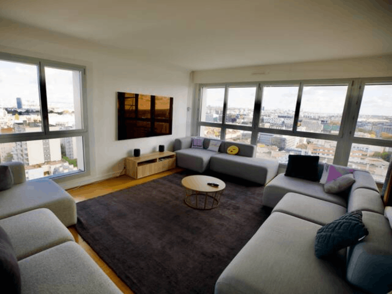 165m2 apartment, with two terraces, an 80m2 open living room-kitchen with panoramic view of Paris, opening onto a spacious 50m2 terrace