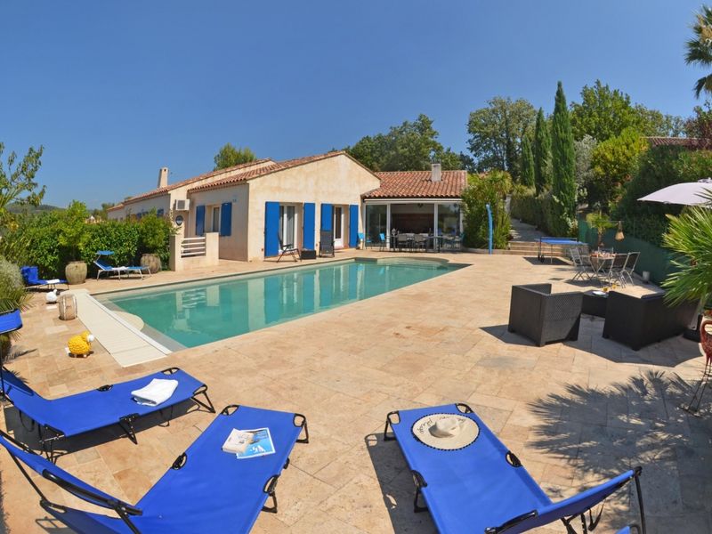The privileged location of this villa located "EAST-SOUTH-SOUTH WEST" allows optimal sunshine. The sunset over Flayosc is breathtaking, divine. The swimming pool beach is planted with palm trees, jasmines and other exotic plants. The pool house with its wood-fired pizza oven, charcoal grill, plancha and paella will make you greedy and gourmet. The swimming pool and its beach, ping-pong, darts, billiards, golf mat and even chess will make your stay in this eco-citizen villa an unforgettable experience. The gardens, Japanese and Mediterranean, the fruit trees, cherries, figs, grapes, plums will awaken your senses. Finally, the Verdon gorges or St Tropez are one hour away.