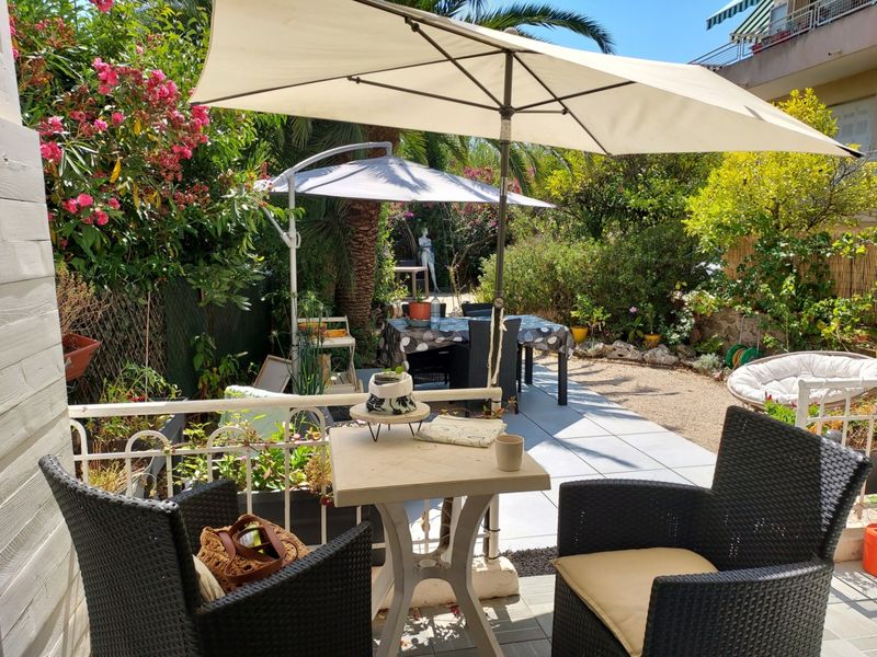 50m from the most beautiful beaches of Cannes, 2 very comfortable rooms, air-conditioned, fully equipped, 200m2 of garden with all the comforts for a beach garden. Deckchair, parasol, tables and chair, hammock...