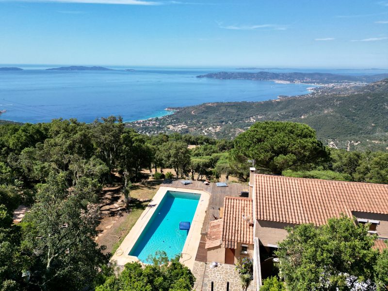 Located just 30 minutes from Saint-Tropez, the villa is the perfect place for a relaxing getaway surrounded by the unspoilt nature of the Maures. In a haven of peace, this spacious property offers an ideal getaway to relax. Nestled in the heart of the Maures reserve, in the middle of lush nature, the villa offers you a breathtaking view of the golden islands emerging from the sea. The house opens onto a large terrace, offering a place to relax privileged to fully enjoy the panoramic view. In addition to this magnificent view, it has a heated swimming pool in the heart of the garden. Inside, the bright and welcoming living spaces invite you to