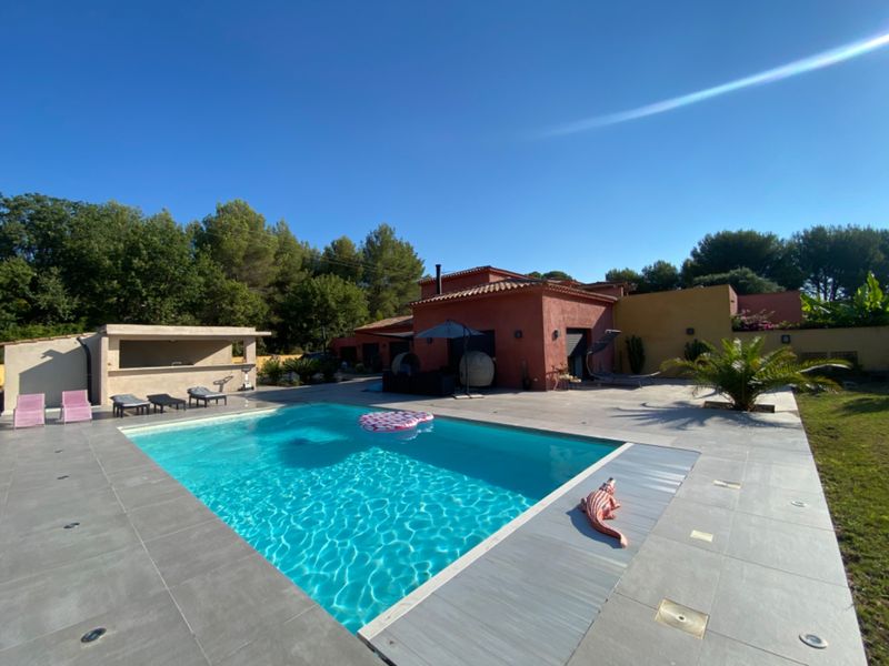 300 m² terrace with large swimming pool, summer kitchen, garden, trampoline, swing, ping pong, pétanque court.