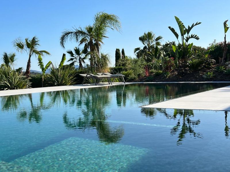 Magnificent new contemporary house with swimming pool, pétanque court, children's trampoline, basketball hoop, ping pong table, table football, bodybuilding accessories and night club.