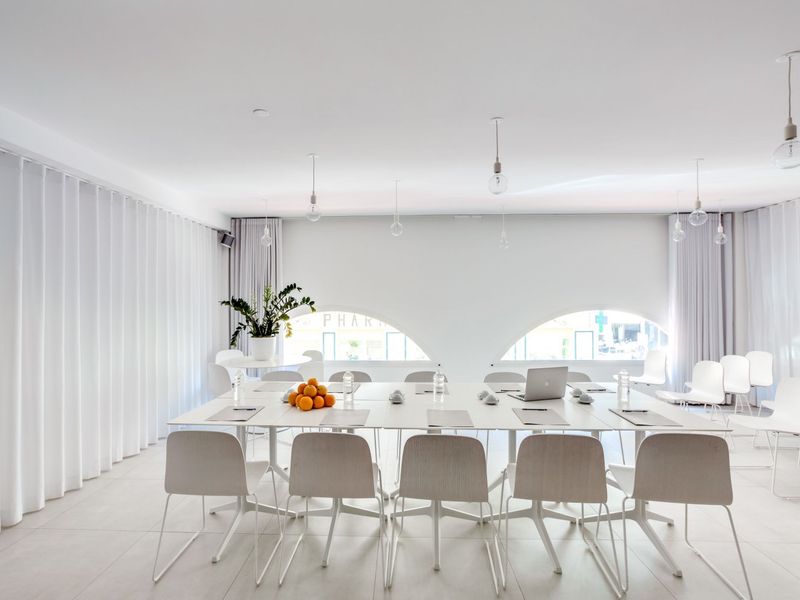 A multi-functional modern minimalist design conference, meeting and events room, all in one colour... you guessed it - white. Booking this room, you benefit from all usual conference materials and utilities, as well as the option for hot drinks and water. We have various booking options Séminaire, including hourly, half day and full day food + beverage.