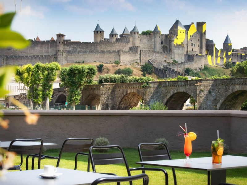 The hotel is ideally located in the heart of Carcassonne and its city center. The Medieval City will provide your stay with a sumptuous backdrop from the hotel's rooms, meeting rooms, terrace, restaurant and even the swimming pool.